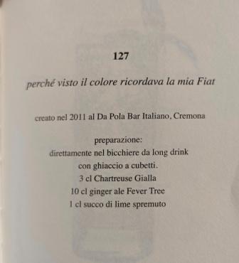 “Perché si torna sempre a casa? Perché anziché tornare a Cremona non sono andato, per esempio, a Venezia? Oppure sulla riviera romagnola? Luoghi naturali per un barman. Oppure a Firenze, Roma… in una città all’estero? Perché invece si ritorna sempre a casa? Le risposte a questa domanda potrebbero essere due. La prima: si ritorna a casa per essere utili alla propria città e averne in cambio il riconoscimento di appartenenza che, inconsciamente, sempre si cerca, una sorta di elezione permanente a professionista esemplare. La seconda: si ritorna a casa perché dalla propria esperienza abbiamo appreso alcune cose, una postura rispetto alla vita, una visione del mondo, una cultura del lavoro che possiamo spendere meglio in un contesto che sappiamo essere privo. …… Voglio dire che ciascuno di noi impara cose che possono portare avanti anche di un solo millimetro la società a cui appartiene: è il nostro contributo alla storia. Se poi il contributo che hai dato ti sarà riconosciuto, tanto meglio, ma in ogni caso non potevi esimerti dal fare la tua parte. Cosi funziona, secondo me.”